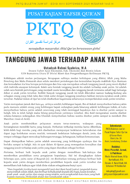 Tanggung Jawab Terhadap Anak Yatim - PKTQ Buletin Jumat Edisi XVII |